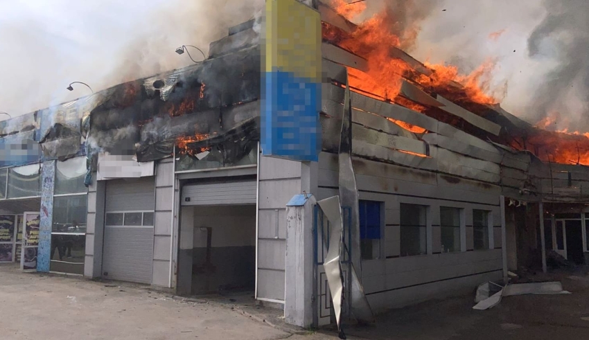 Flăcările au afectat aproximativ 1.000 de mp din construcție, unde s-a propagat rapid la vopsitorie, service, spălătorie și spațiile de birouri.