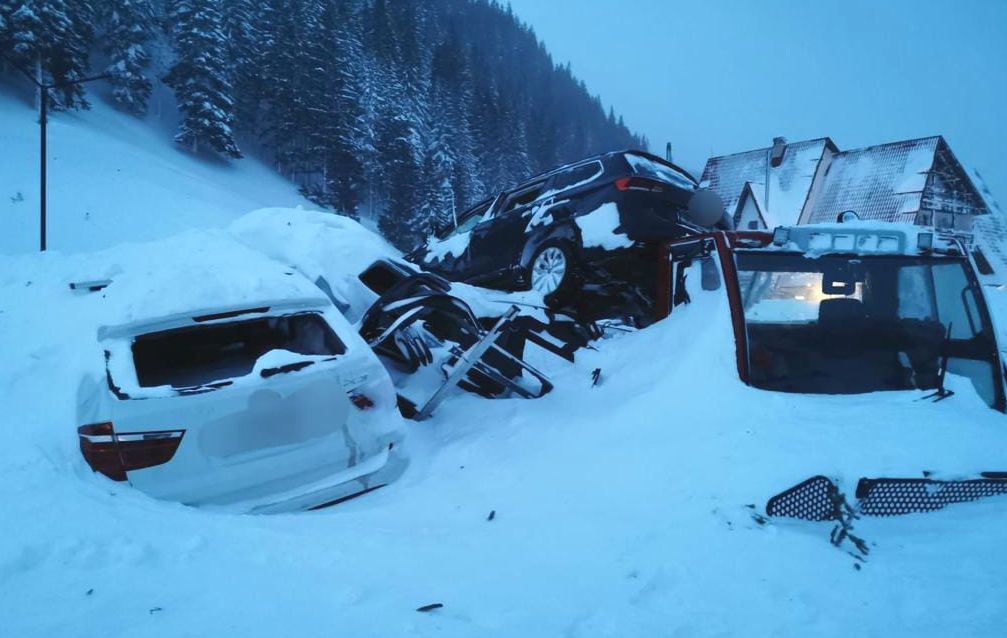 Poliția Argeș a intrat pe fir: „În cursul nopții trecute, pe DN 7C, km 106-107, în zona unei cabane, a avut loc o avalanșă în urma căreia au fost avariate mai multe autoturisme și aproximativ 60 de persoane au rămas izolate la cabană.
