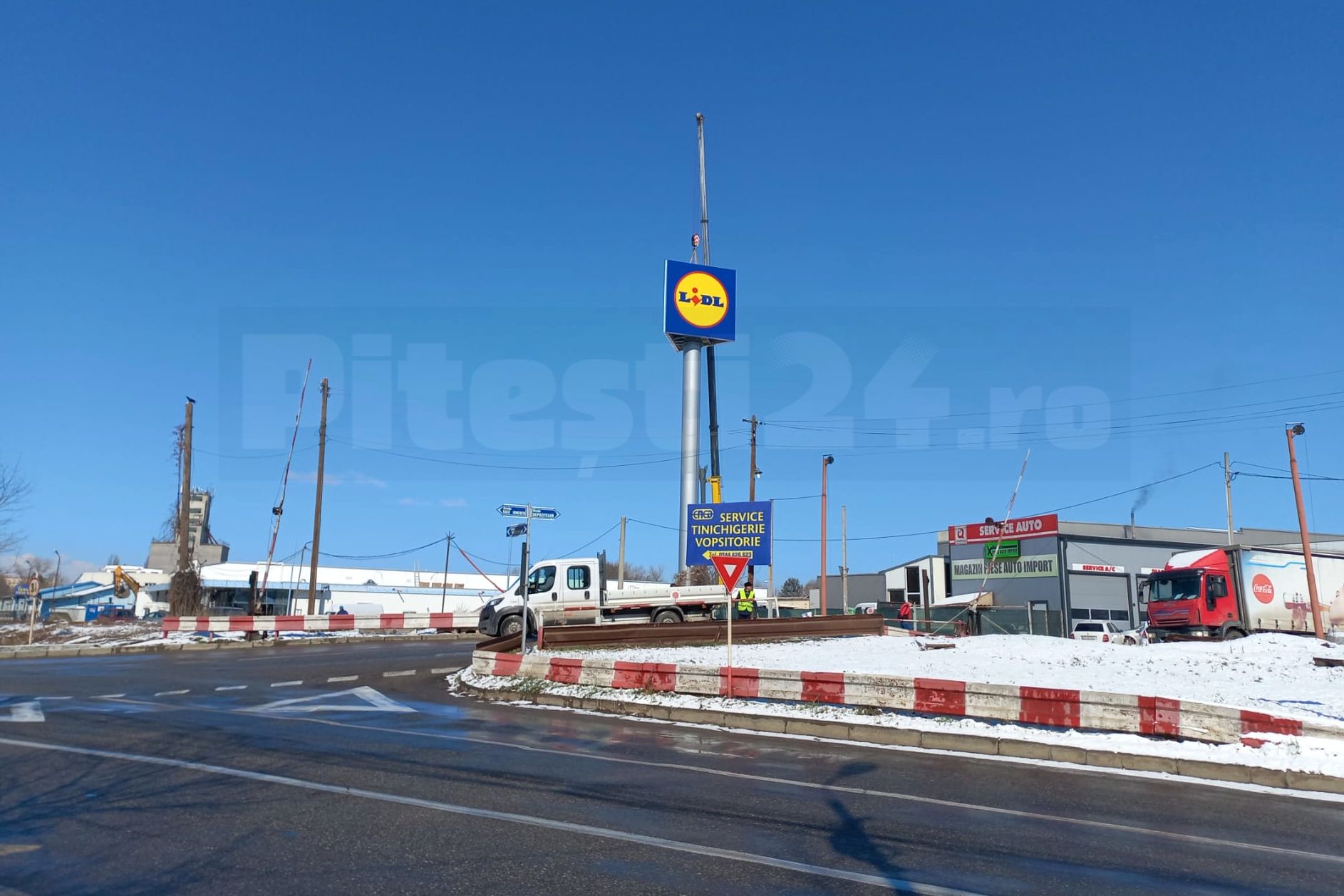 Astăzi a fost instalat totemul publicitar al supermarketului Lidl care este în construcție în zona CNCD din Pitești.