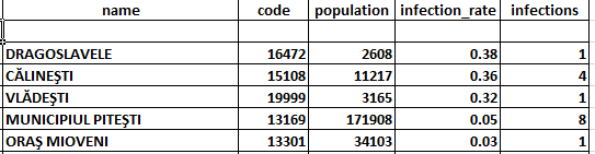 În restul localităților din Argeș rata de incidență cumulată în ultimele 14 zile a cazurilor de infectare cu SARS-CoV-2 este zero.