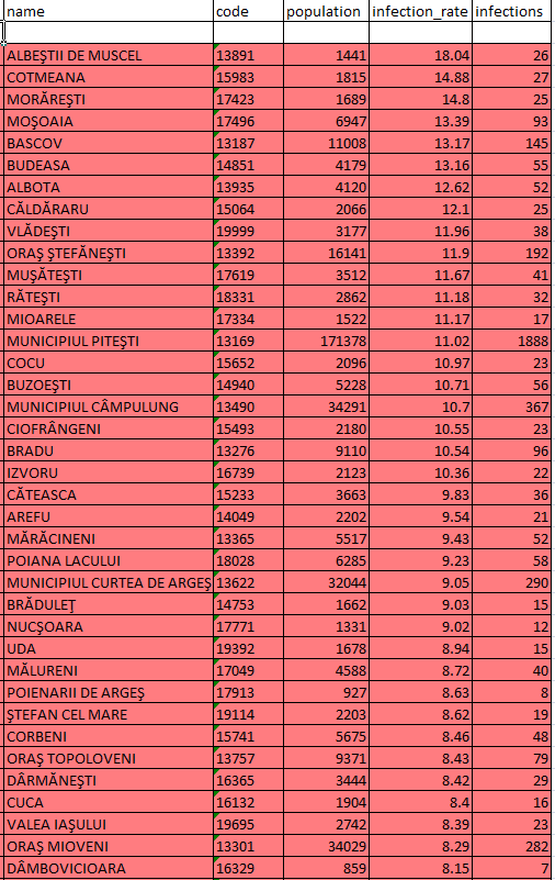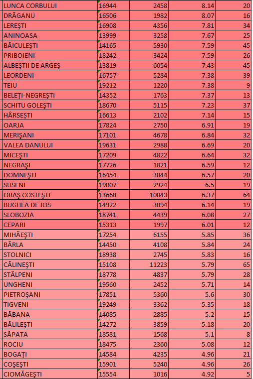 Datele epidemiologice la zi (4 noiembrie) în toate localitățile argeșene (click pe imagini pentru vizualizare):